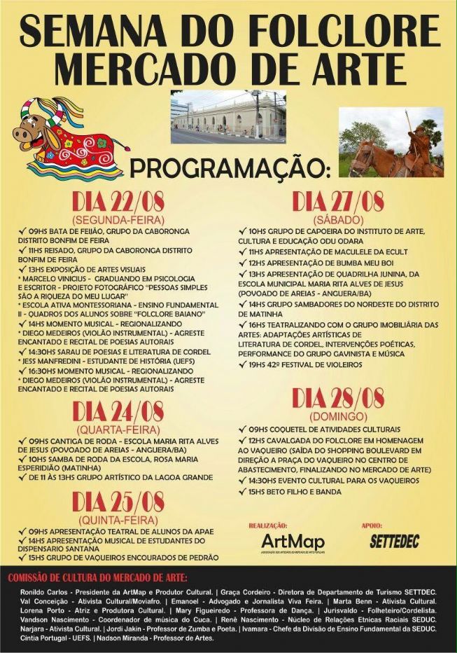 A Semana do Folclore do MAP (Mercado de Arte Popular) acontece entre os dias 22 e 28, com apresentações de várias manifestações de grupos locais e de outros municípios.